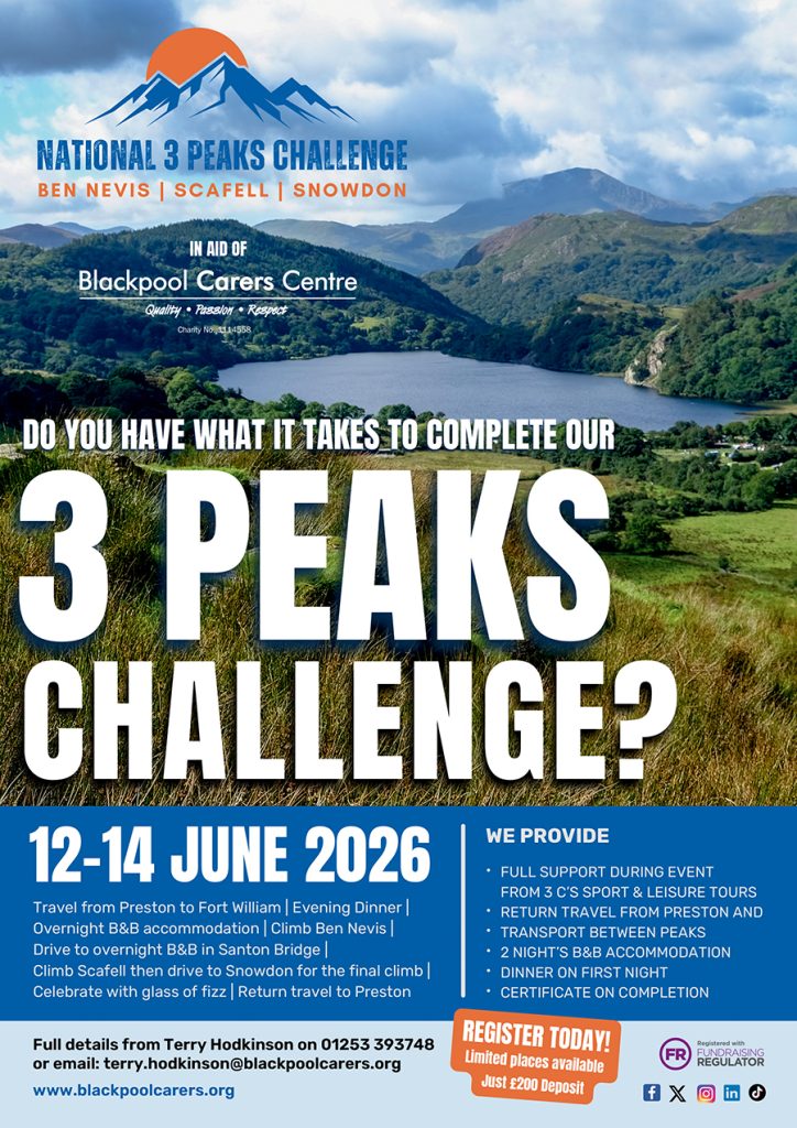 For full details and to register your place, call Terry on 01253 393748 or email terry.hodkinson@blackpoolcarers.org for more information.